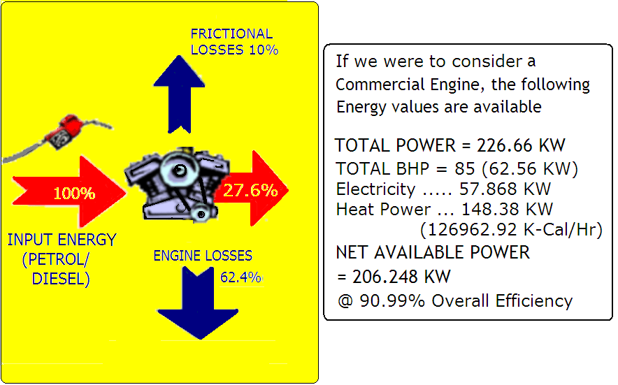 It is possible for us to convert any Petrol engine into CHP Engine system so that the efficiency finally improves from a POOR 30% to over 83%