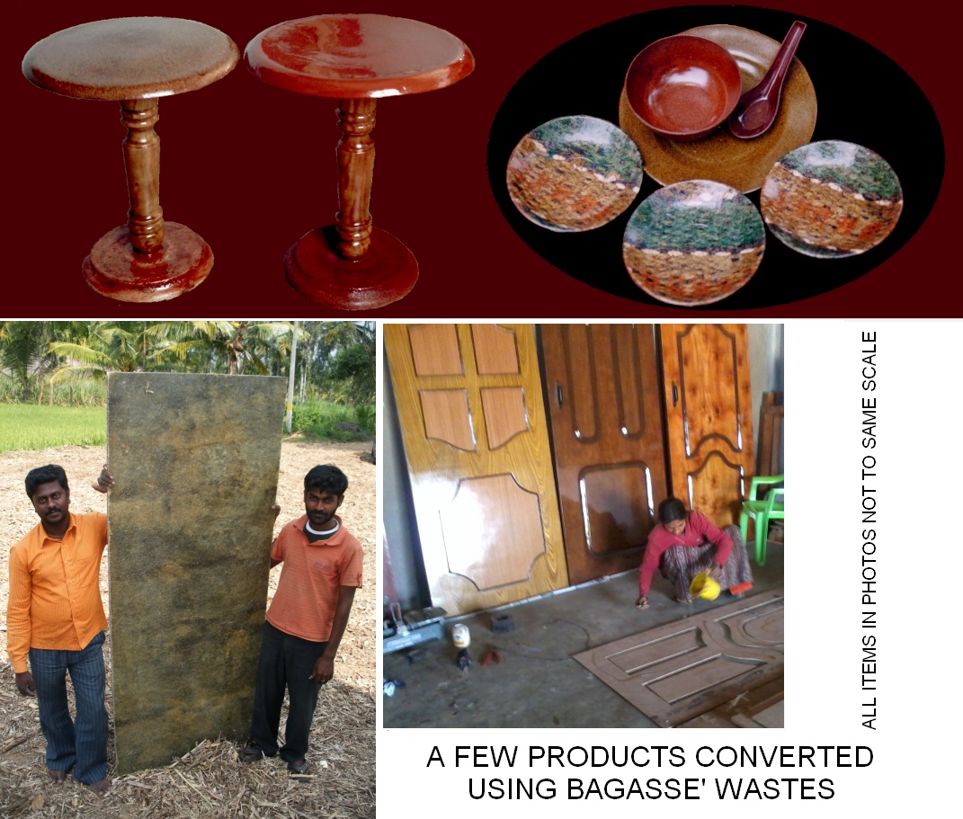 4. The available Bagasse’ from Processes in ‘2’ and ‘3’ above are 14.25 T. These could be converted into High-value Engineered products such as doors, Flooring, Structural systems, Crockery etc… A Total of not less than 25 T, valued about Rs.2,500,000